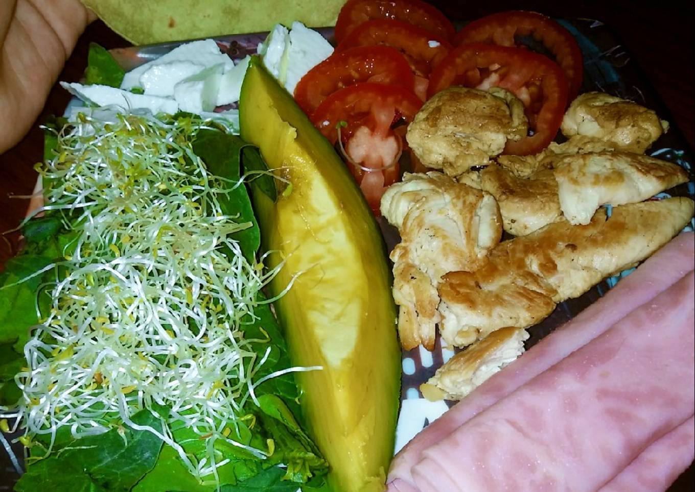 - Colocar las espinacas, el aguacate y el germinado.