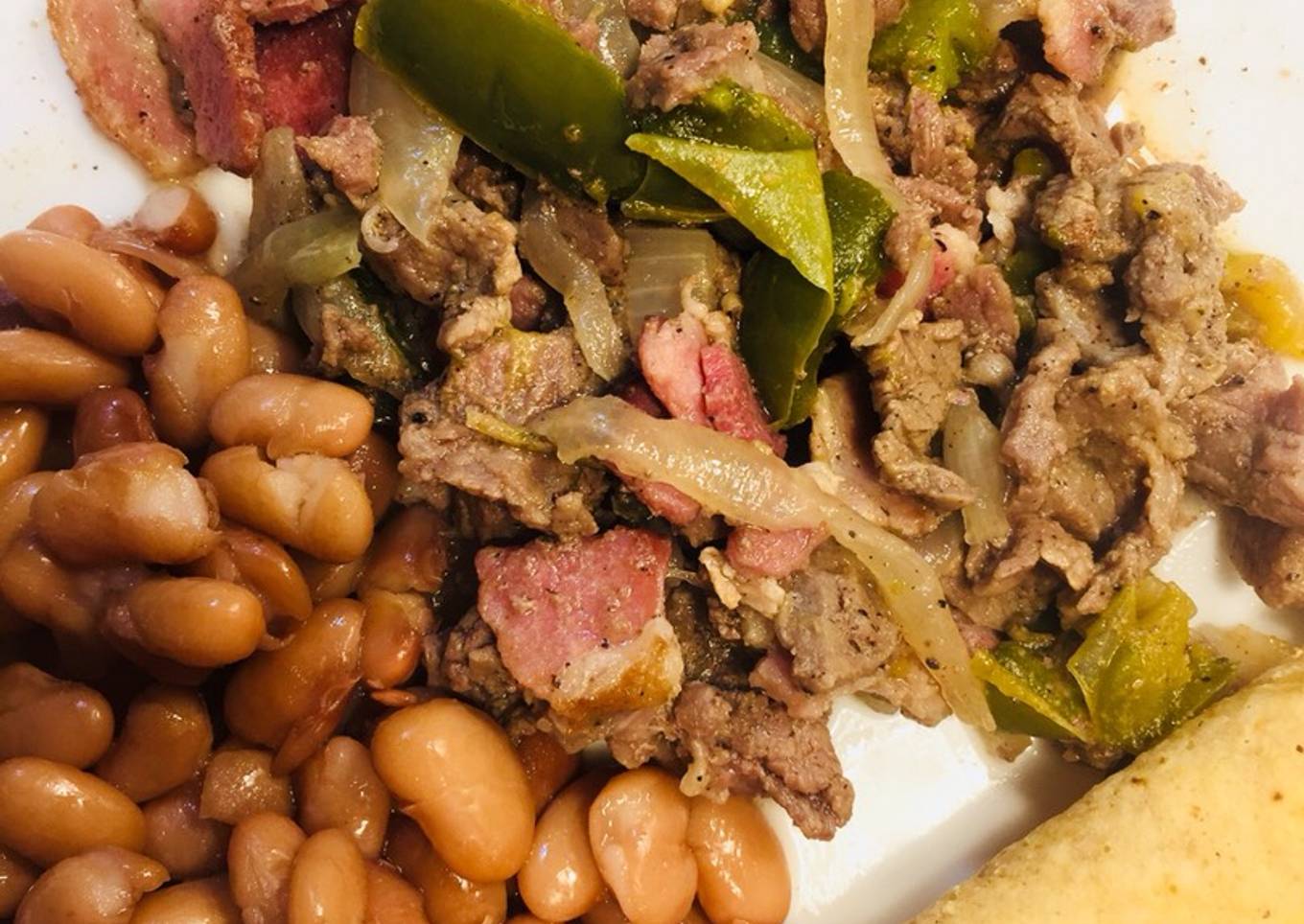 - Y ahora, mezclamos todo 🎉 carne, tocino, verduras y esperamos a que se mezclen todos los sabores, hierve y LISTOOOOOO.