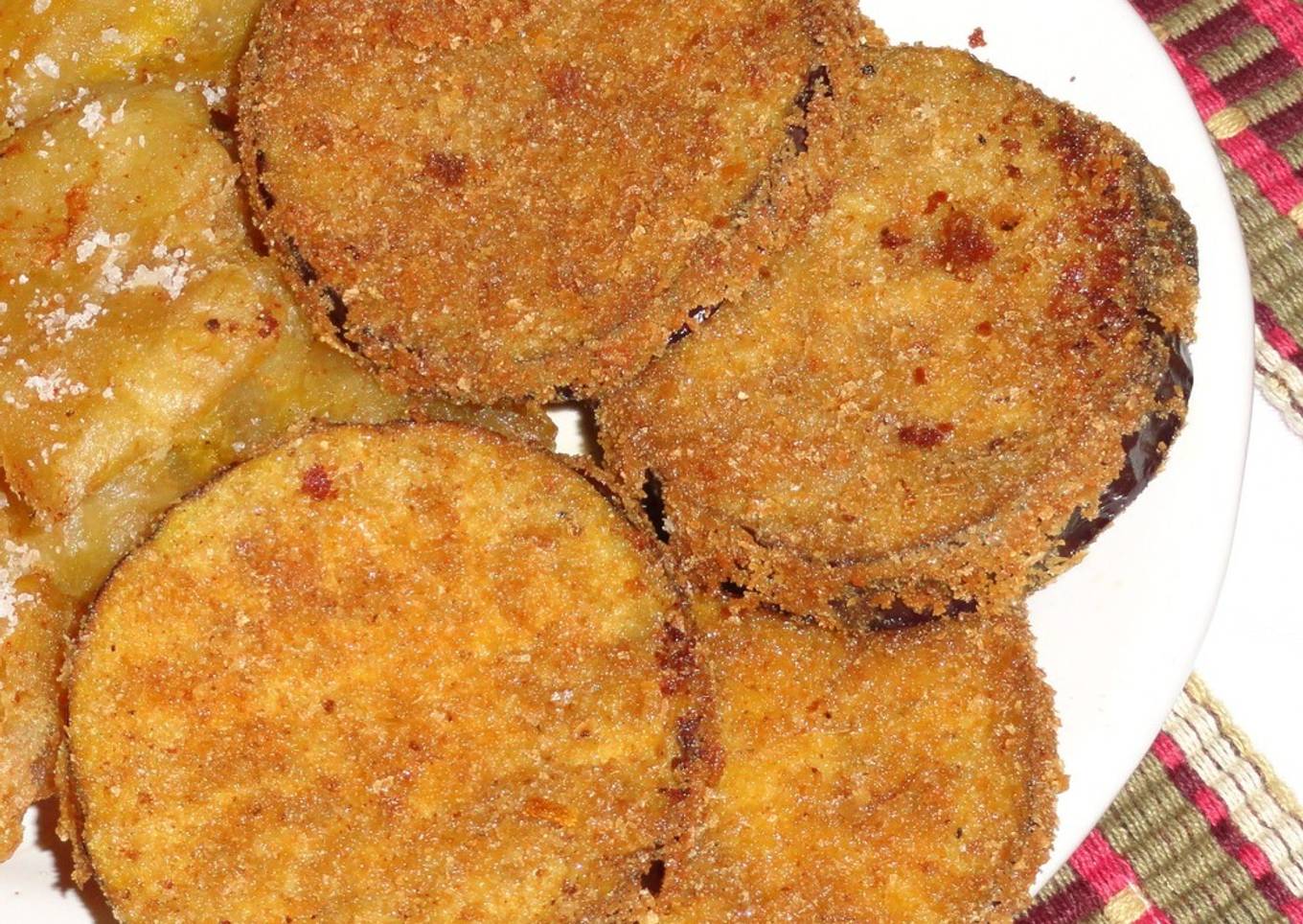 Berenjenas en rodajas rebozadas en pan rallado y fritas en aceite, ideales como guarnición de cualquier comida, deliciosas. La berenjena es un producto culinario muy apreciado por diferentes culturas.