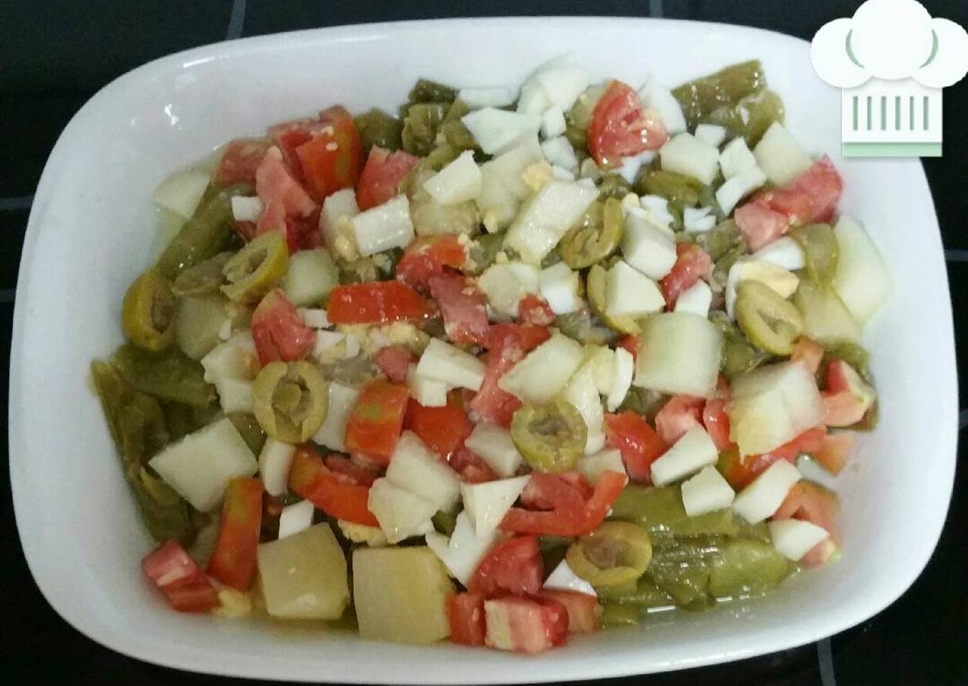 - Cortamos el tomate y el huevo y el melón y las olivas