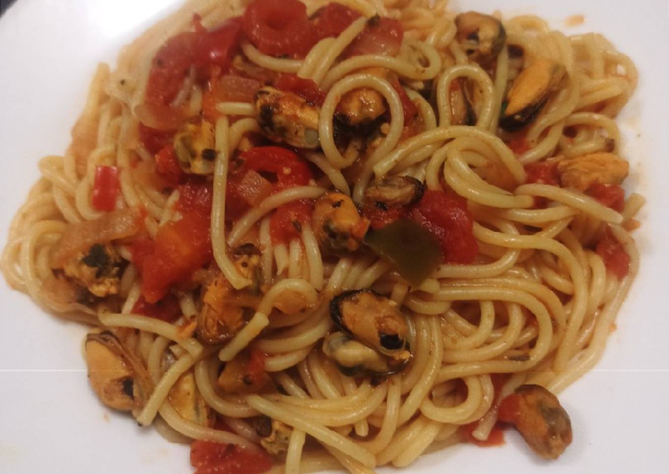 Tallarines con mejillones