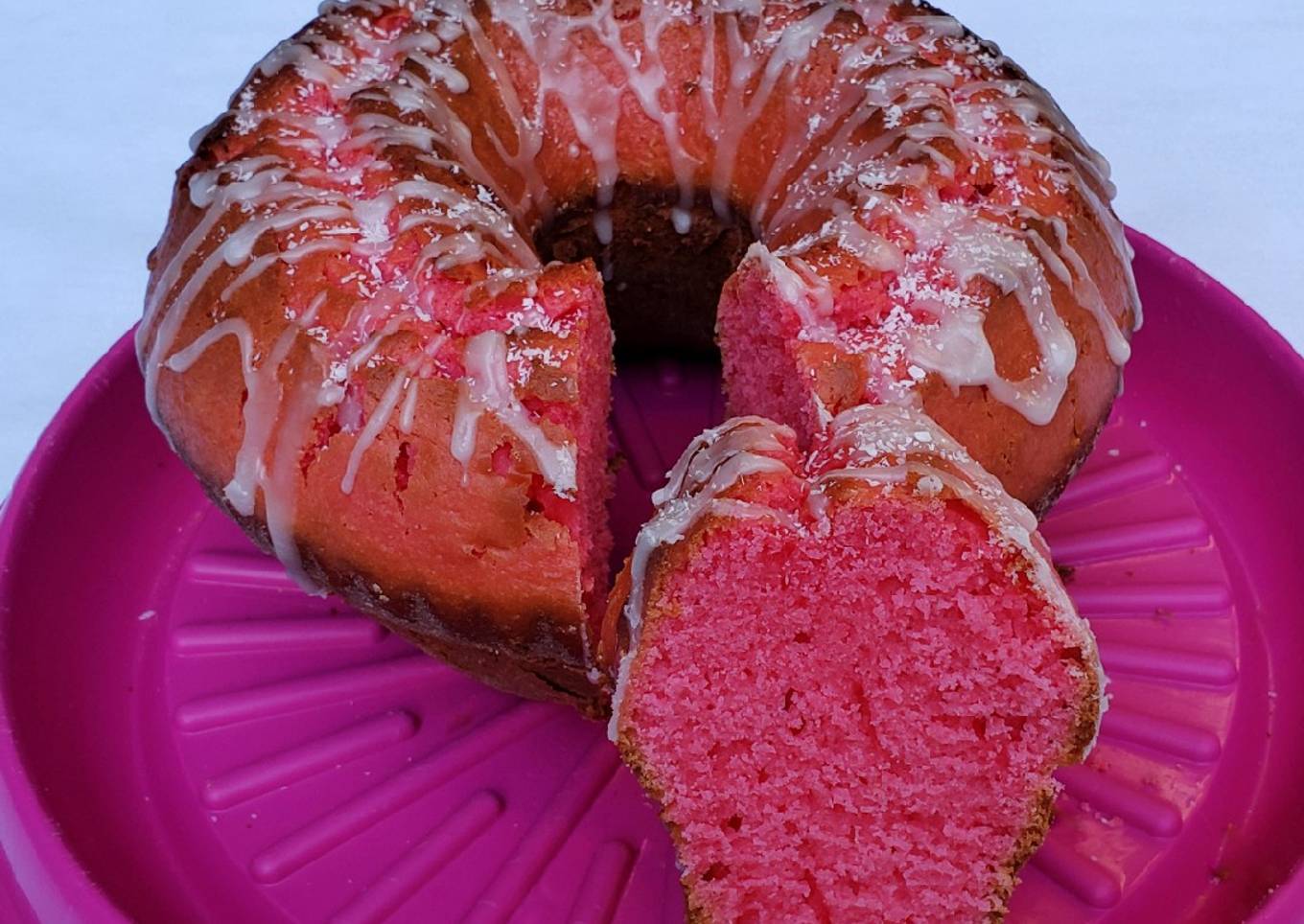 On Wednesdays we wear pink! 💖 Hoy les traigo una comida con mucho color y sabor. Hace un tiempo vi una receta similar con otro sabor de gelatina y decidí darle una chance a la de cereza. El resultado fue este bizcochuelo súper esponjoso y colorido preparado #alhorno 🍰